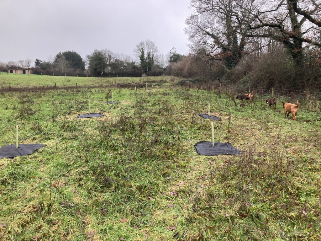 45 new trees (Oak, Rowan and Birch) planted courtesy of Devon Council. One day they will look fabulous…