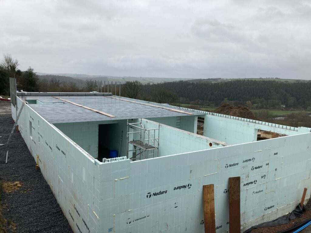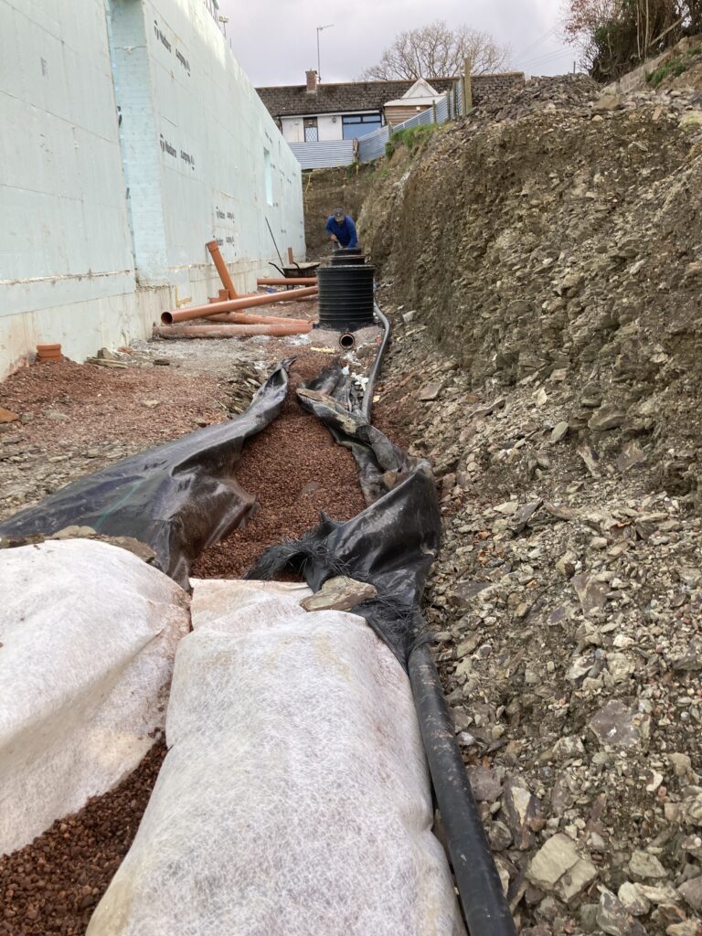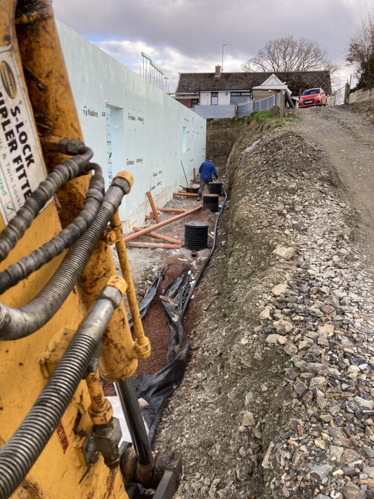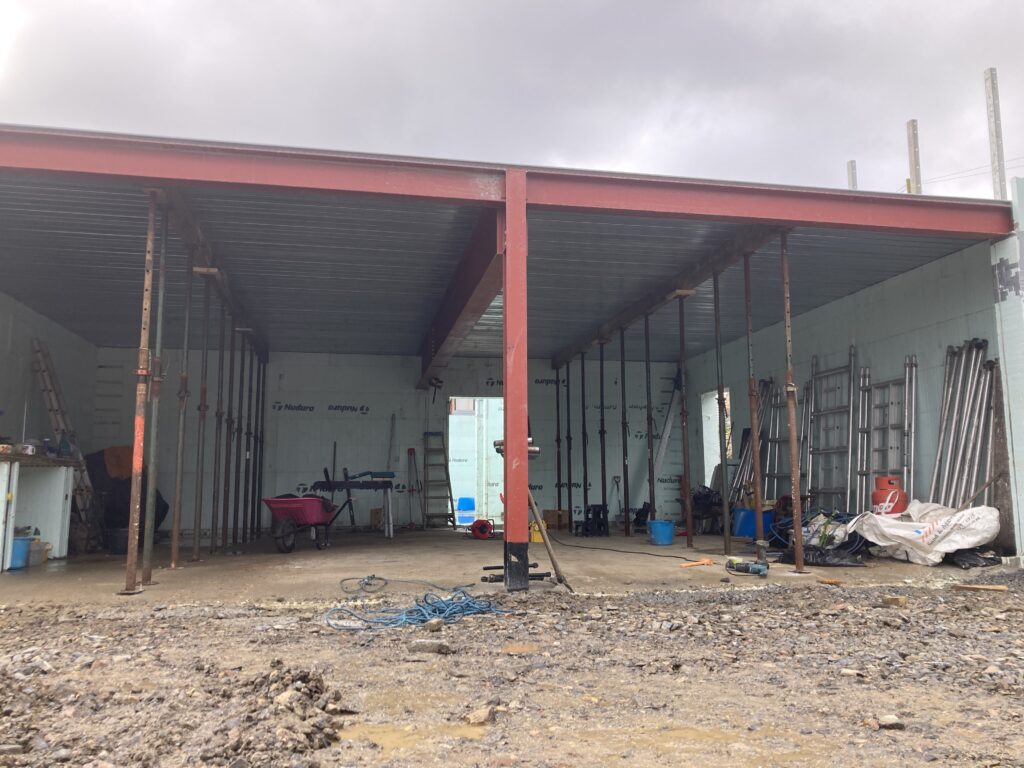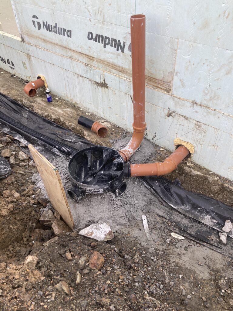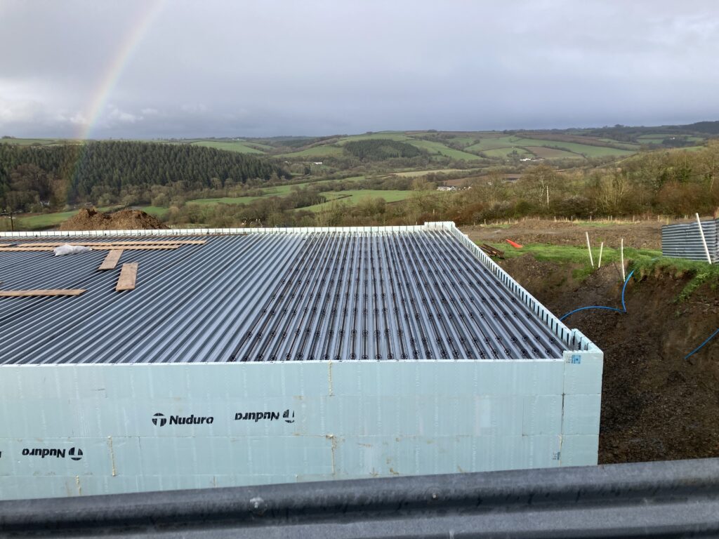 Metfloor is the permanent shuttering that supports the first floor slab – a corrugated sheet system. This is our focus this month together with finishing off the drainage…