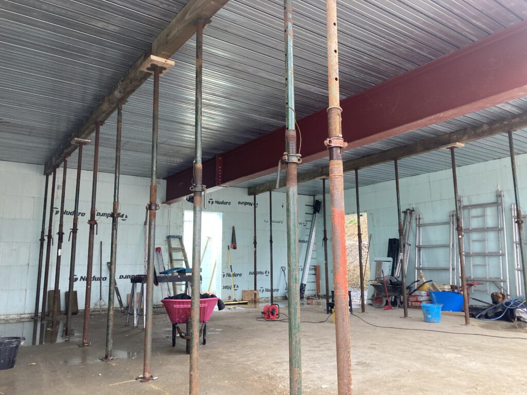 The Duraform boys have tamed the liquid chaos again. Our naievety probably helped – we probably over braced, kickered, propped, screwed everything but we’re all still alive. Now the dismantling of all the temporary stuff begins ready for the first floor slab work to begin.