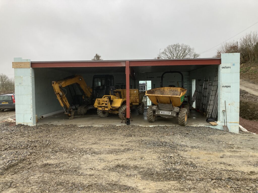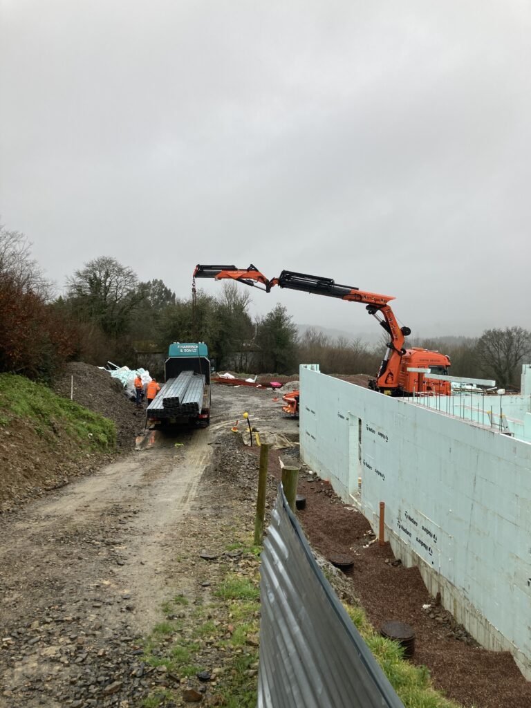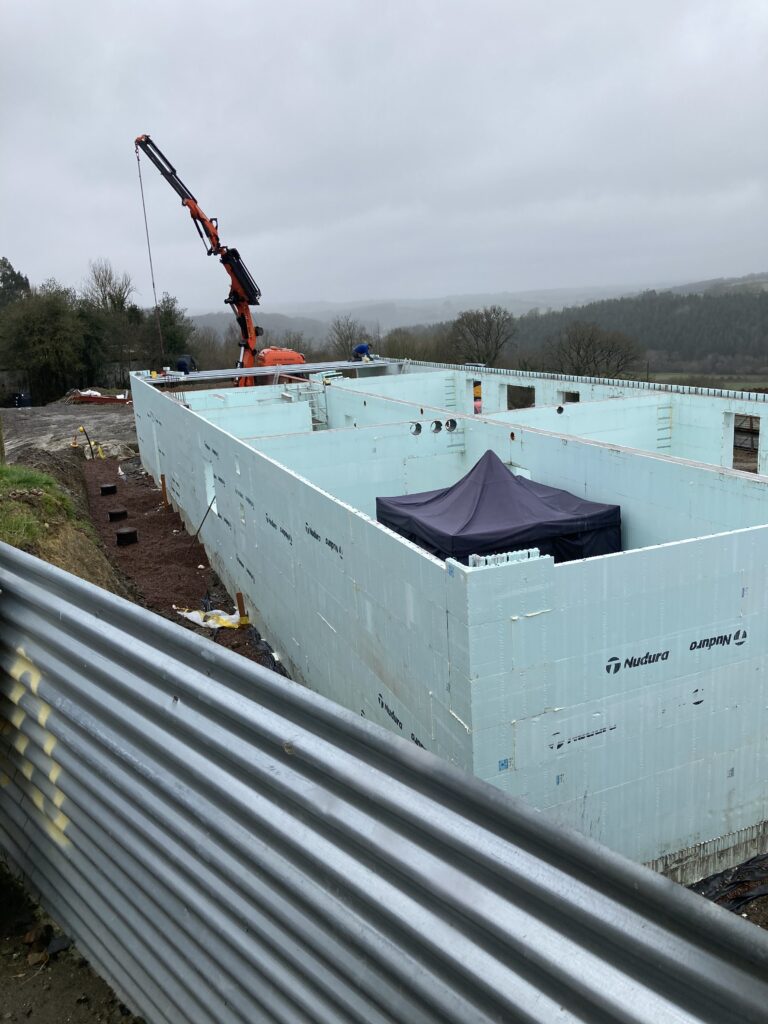 Tuesday March 12, the day the beams went in and we started the Metfloor permanent shuttering. Things went surprisingly well (thanks to Mark on the hiab) and we managed to get all the garage covered and the kit in the dry for the first time since March last year.