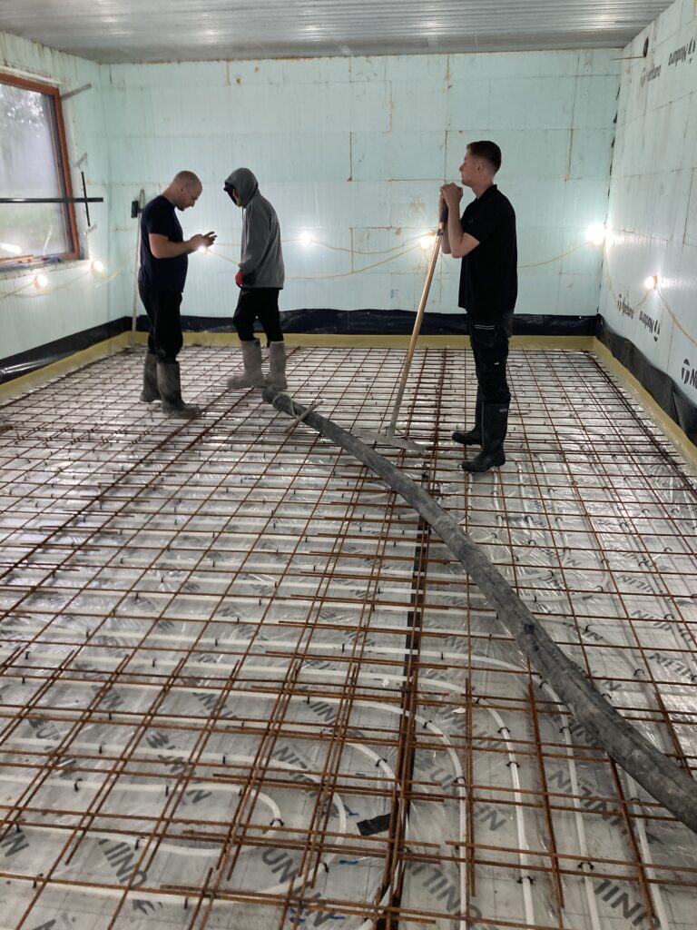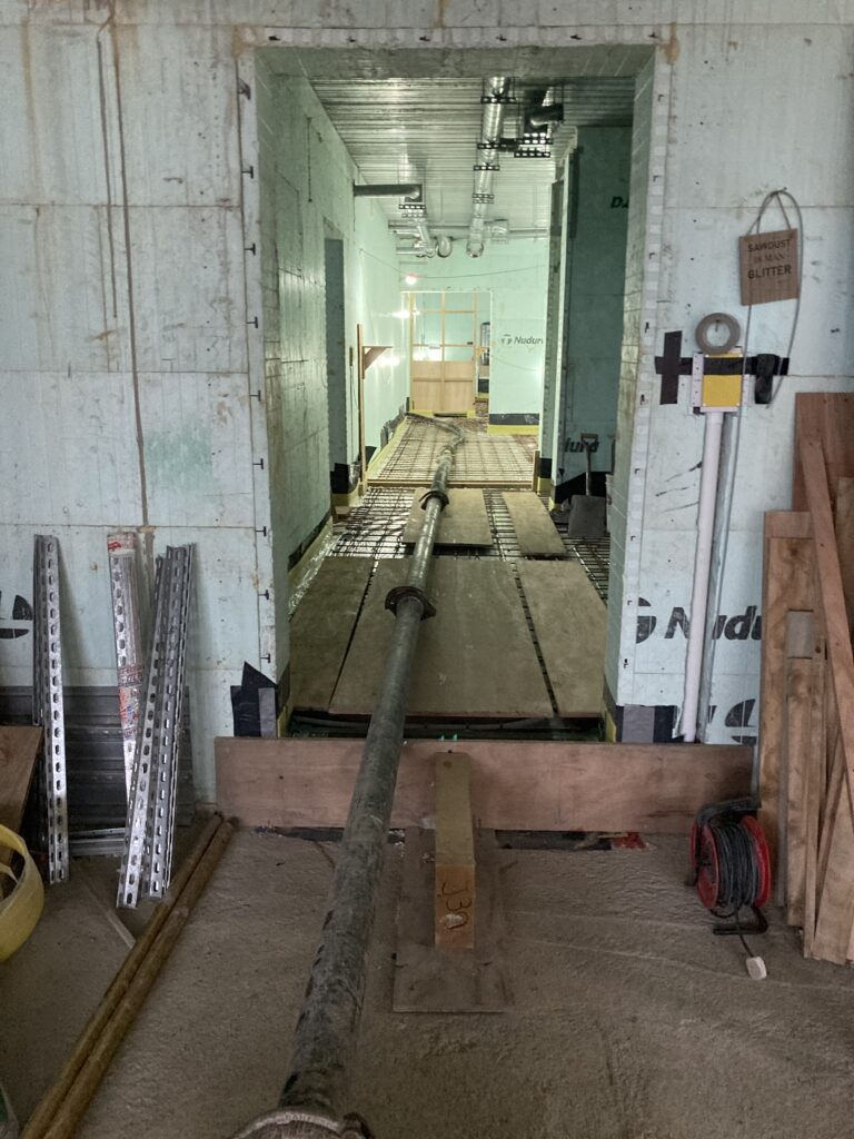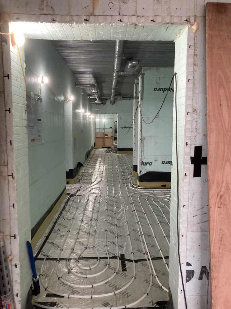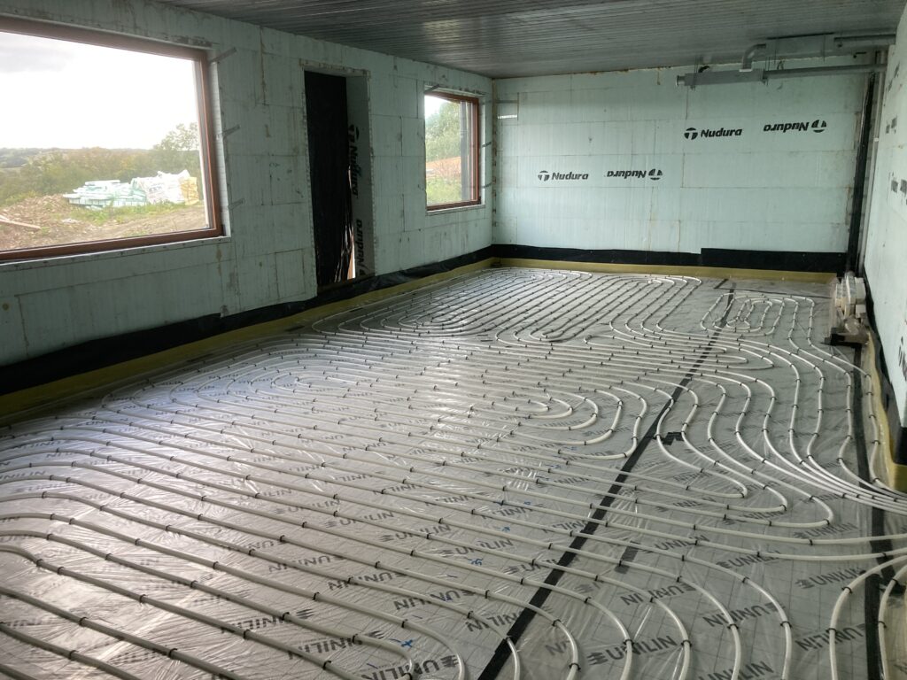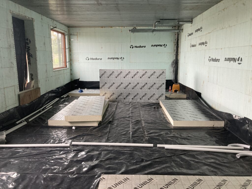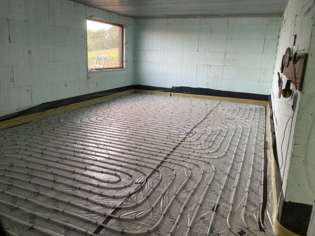 First we had to get the dpm in and seal around openings with bitumen as well as dpm. Then the vacuum pipework before the insulation…