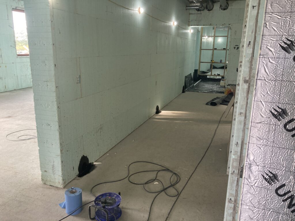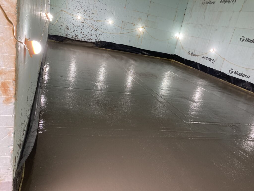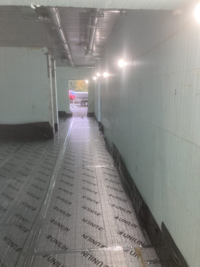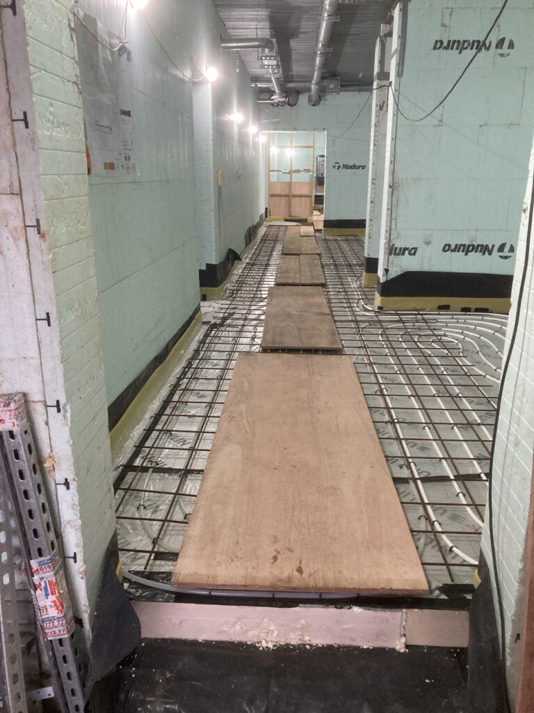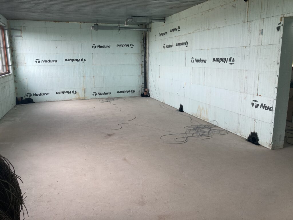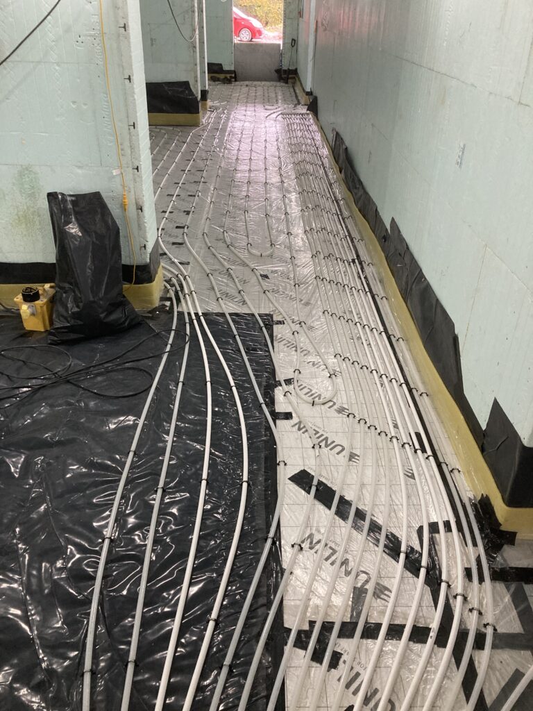 First we had to get the dpm in and seal around openings with bitumen as well as dpm. Then the vacuum pipework before the insulation…