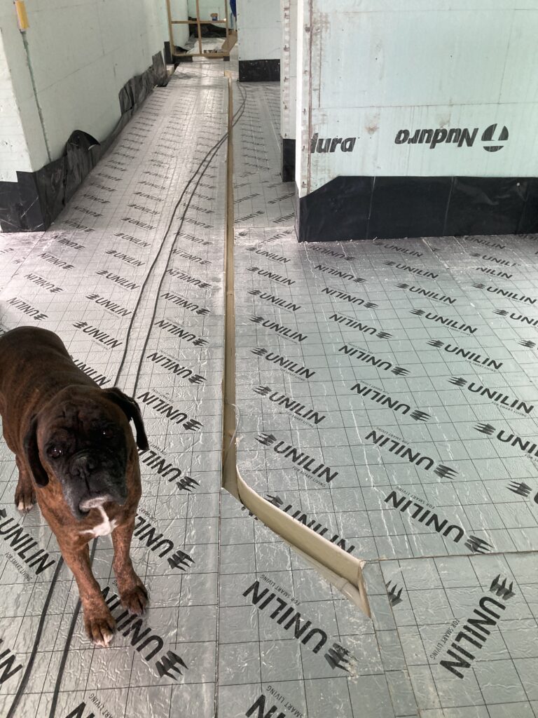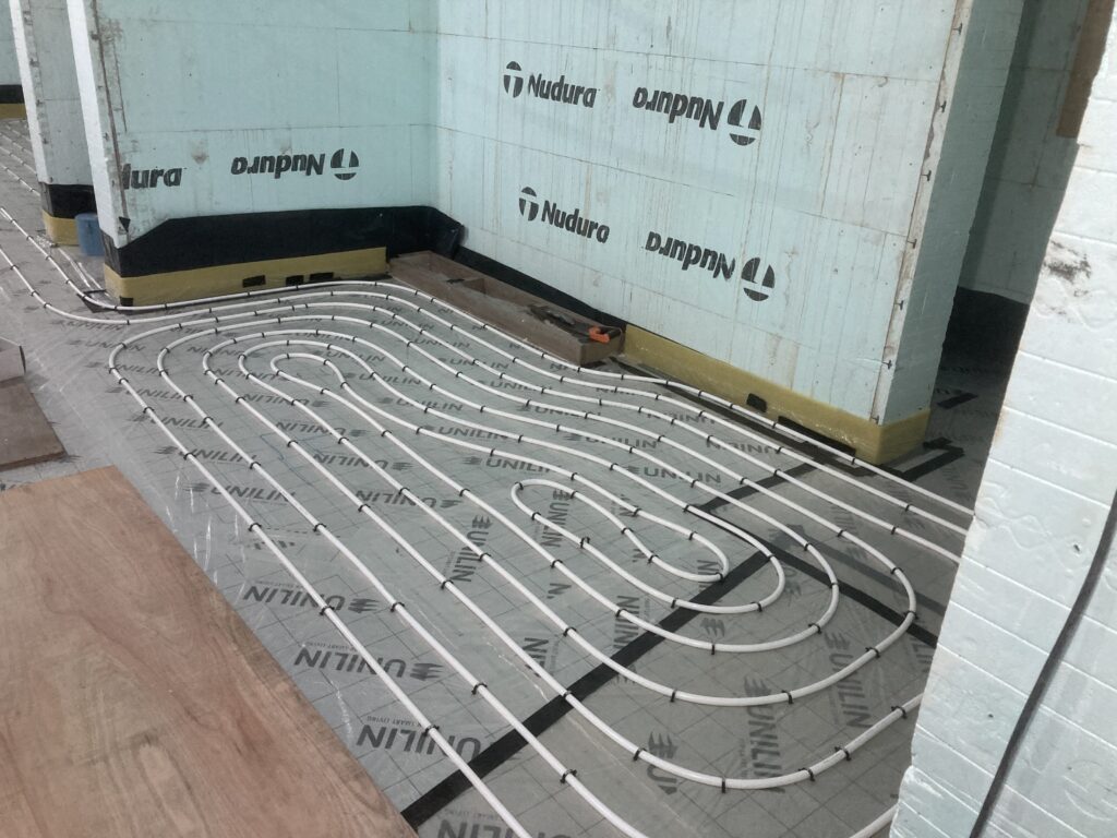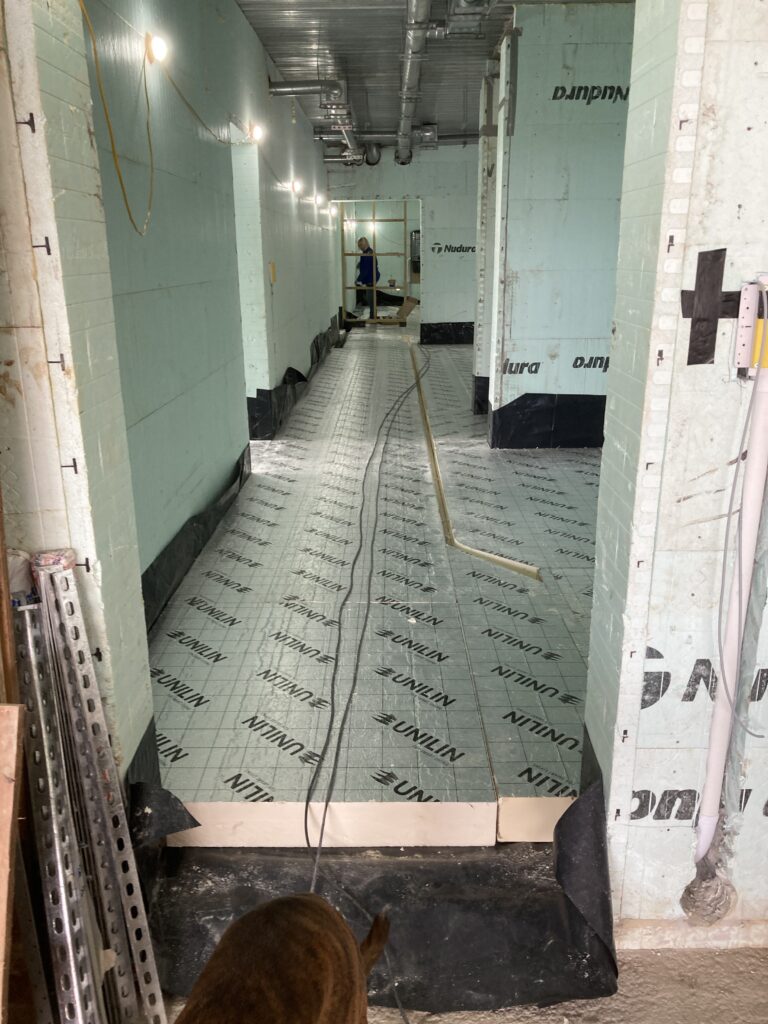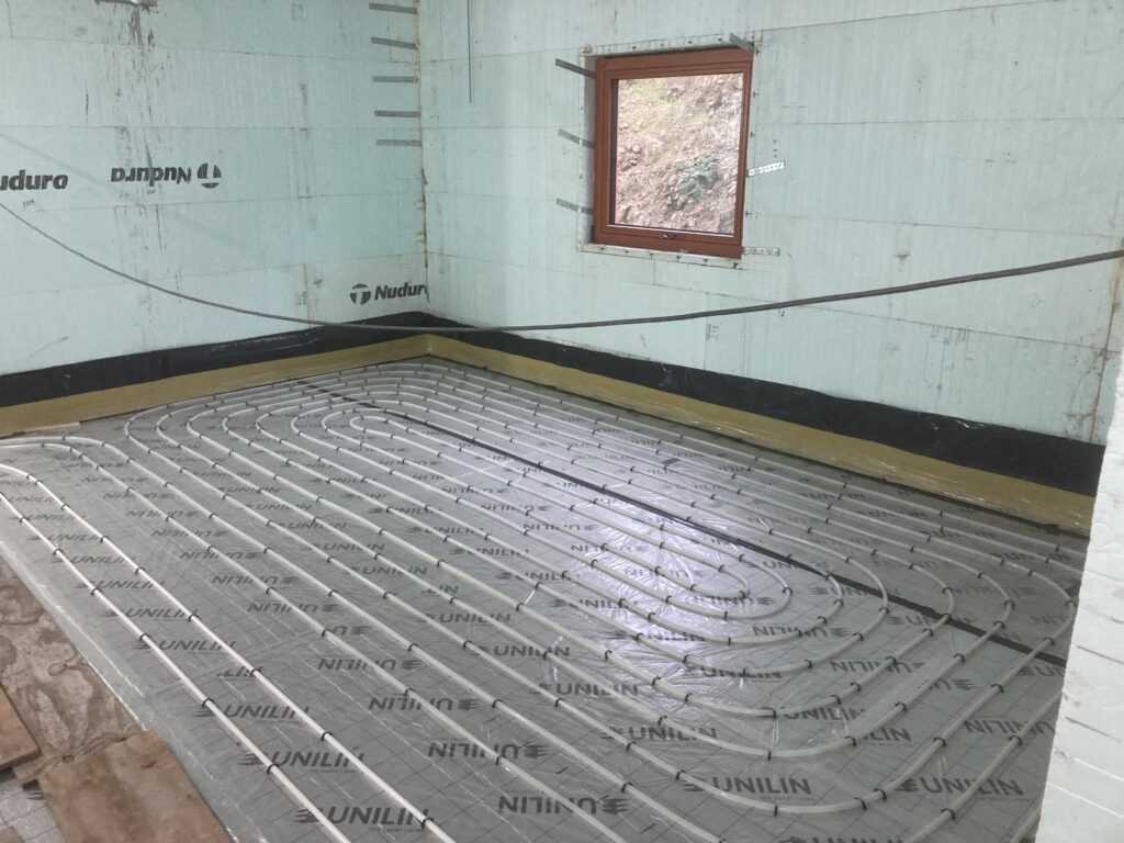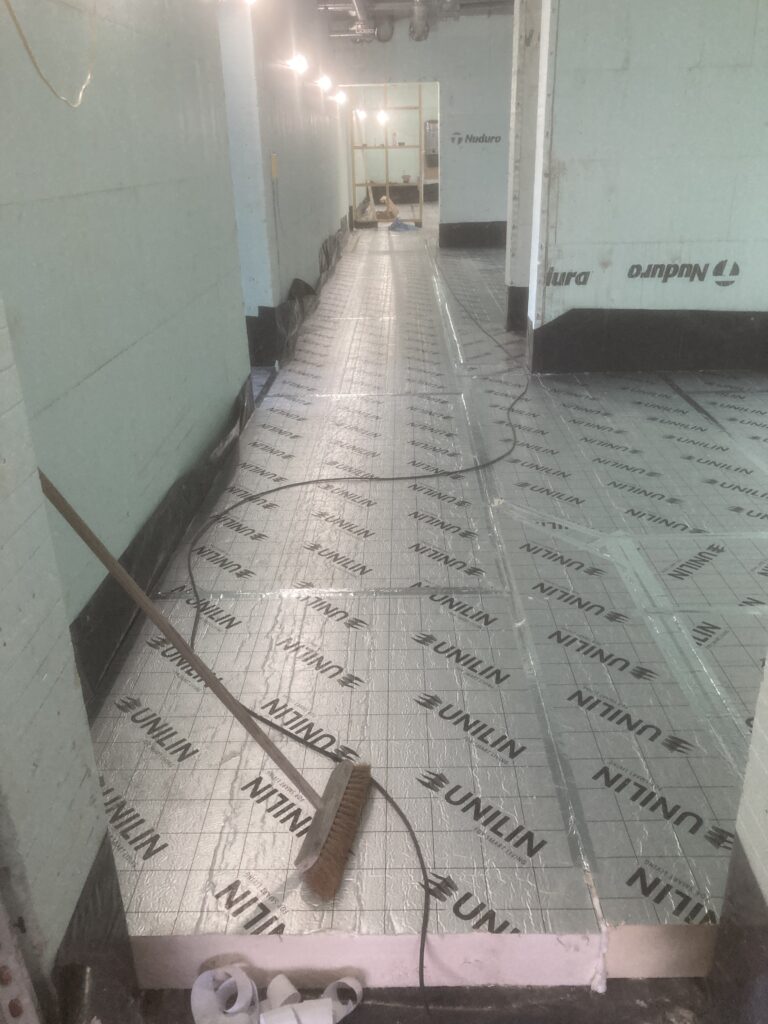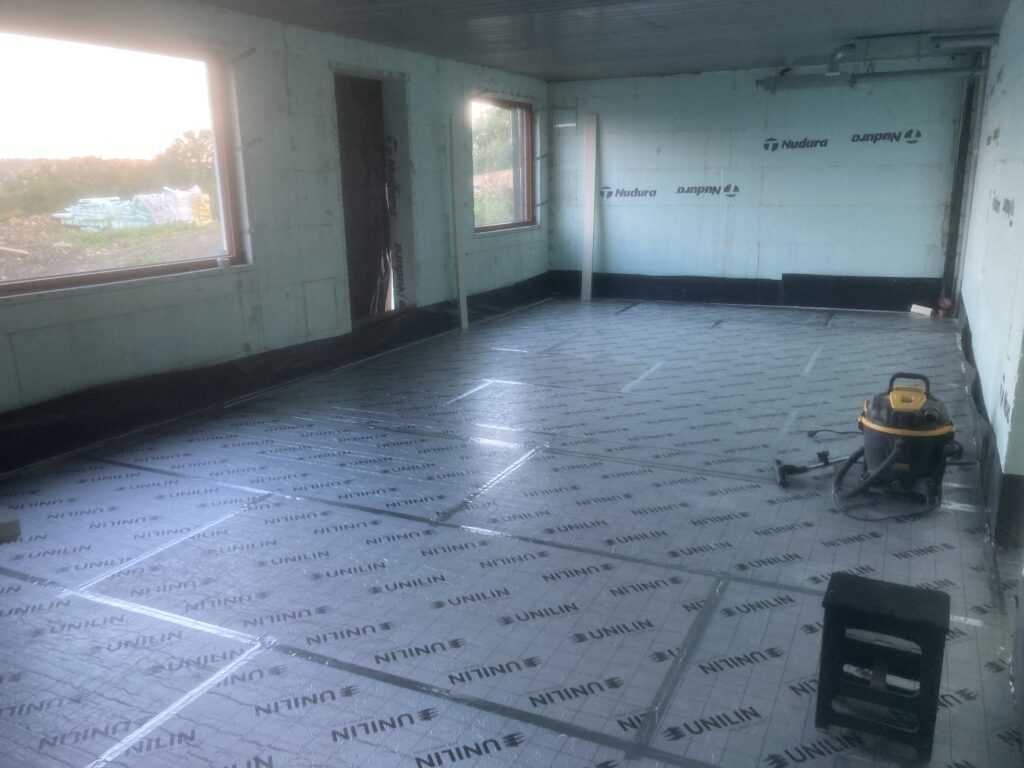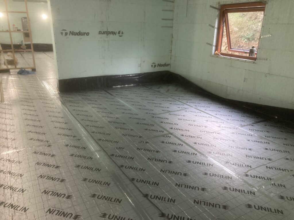 Then the edge foam, insulation and protective membrane before the underfloor heating pipework: