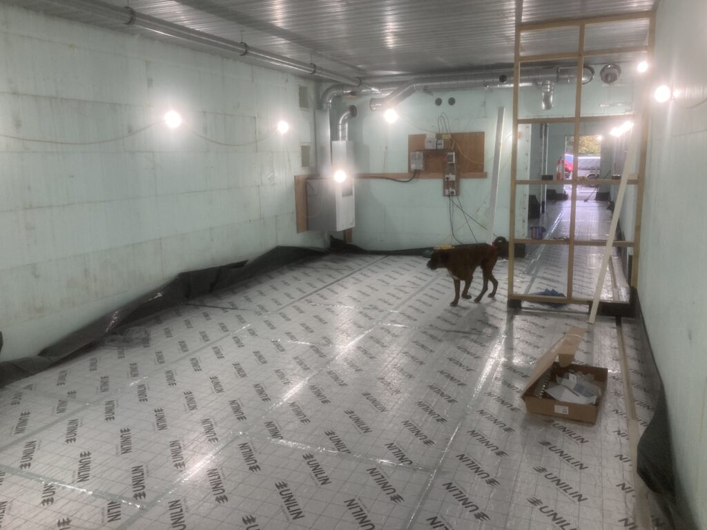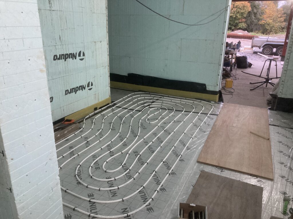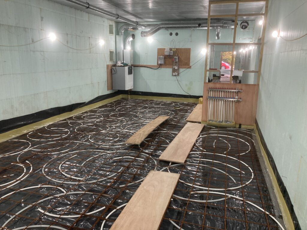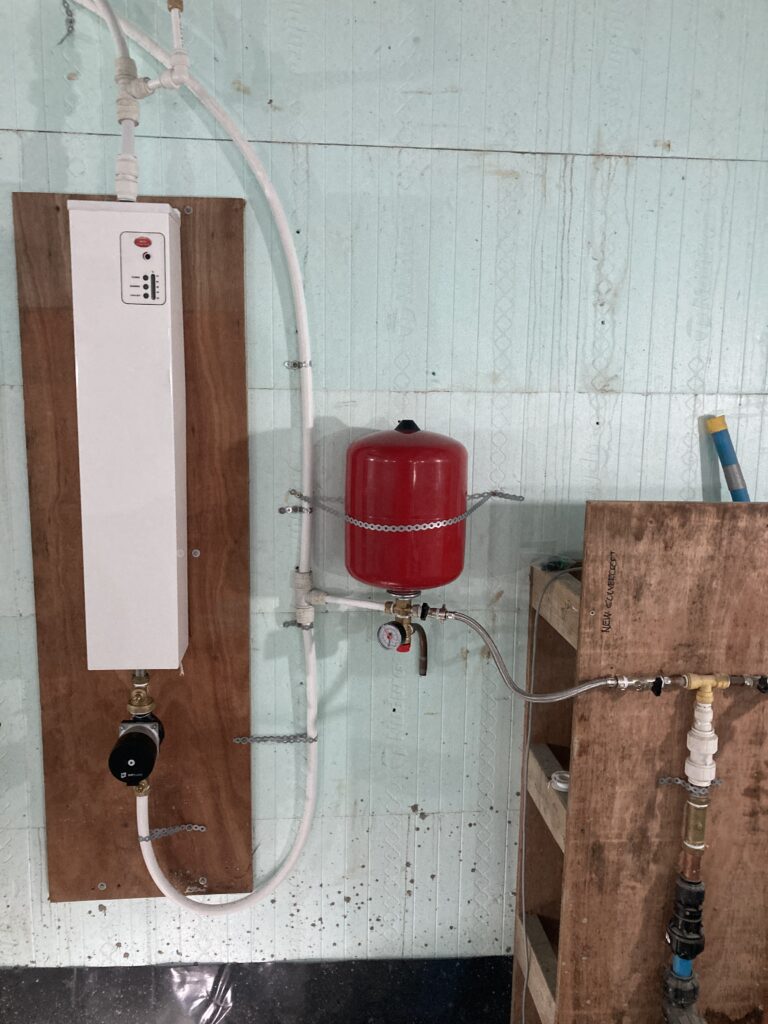 And we installed the temporary heat source for the underfloor heating. Thanks to Adam Cornish at Earth-Inspired for all his advice and help!
