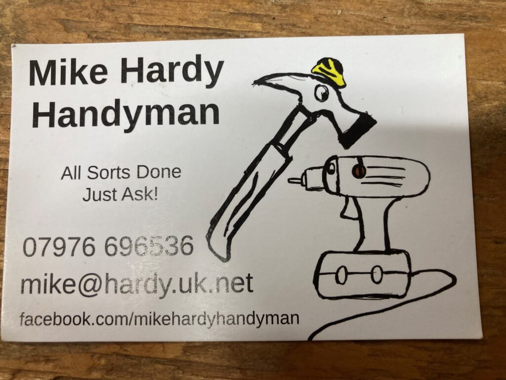 Mike Hardy. A very handy man! Knowledgeable about nearly everything DIY related and a trained Surveyor and excellent mechanic. Solution focussed problem solver – but not before 8 in the morning.